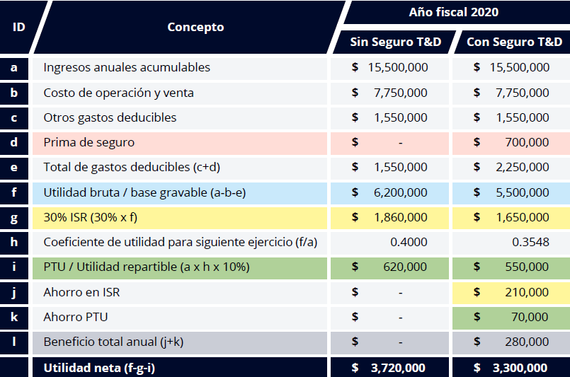 ($1,650,000 / $1,860,000 – 1). - Beneficio de ahorro del 11.3% en utilidad repartible